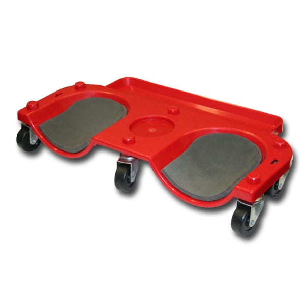 Cushioned garage knee cart. Ease the stress on your knees while working. High impact plastic construction. Cushioned foam non-slip knee cups. Rolls easy. Built-in tool/ parts tray10 x 20 x 4.