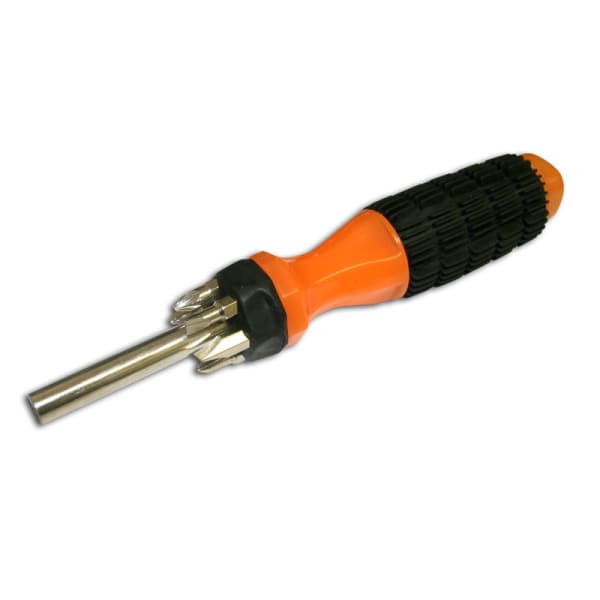 Cushioned Handle Screwdriver. 6 Assorted bits. Mixed colors.