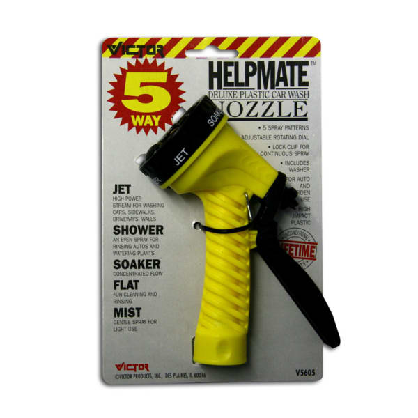 Deluxe Plastic Car Wash Nozzle. Five spray settings with adjustable rotating dial.