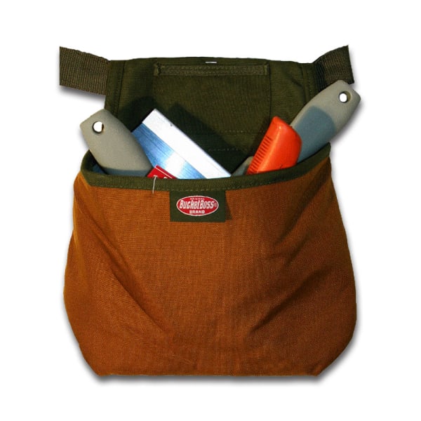 BUCKETBOSS nail pouch. Large main compartment features a reverse taper shape that prevents spilling. Super tough, double wall reinforced CORDURAmaterial is resistant to punctures and tears. Tools not included.