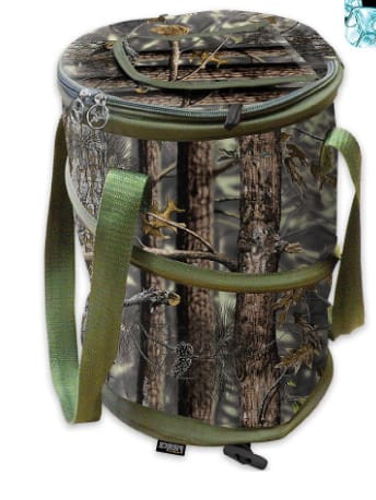 COOLERZ® Collapsible camo cooler. 12 pack Capacity. Inner lined insulation keeps items cool for hours. Zipper and Top flap cooler access. Dimensions: 9" x 9" x 13".