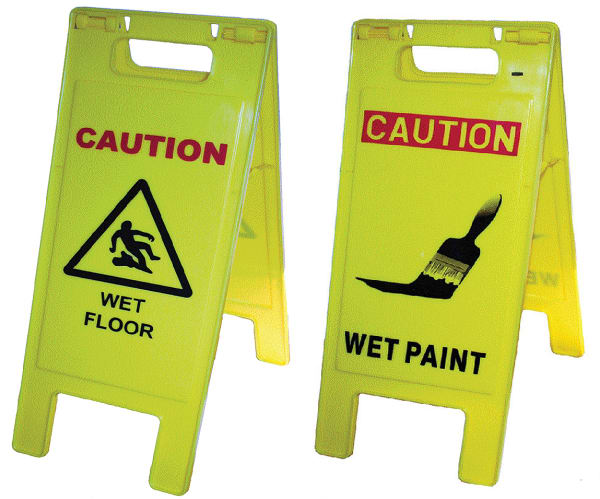 Caution Floor Signs. Easel Style. Top Handle. 24” x 9’ Overall Size