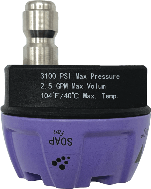 Lawn & Leaf® 5-in-1 Adjustable Spray Nozzle. 5 Settings: 0°, 25°, 40°, Soap Fan, & Soap Jet. 3100 PSI Max. 2.5 GPM Max. 104° F Max Temp. Fits Most Gas & Electric Power Washers with 1/4” Quick Connect Coupler. Retail Packaged.