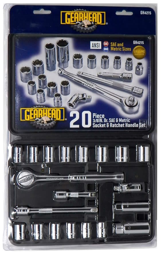 20PC Gearhead® 3/8" Drive Socket Handle Set. Includes: