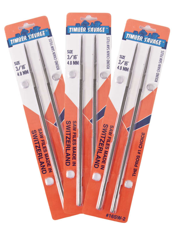 Timber Savage® Premium Swiss Chainsaw File 2 Pack. Made in Switzerland. Fastest Cutting. Longer lasting. UPC'd 2 Pack Blisters. Retail Packaging to Increase Retail Sales.